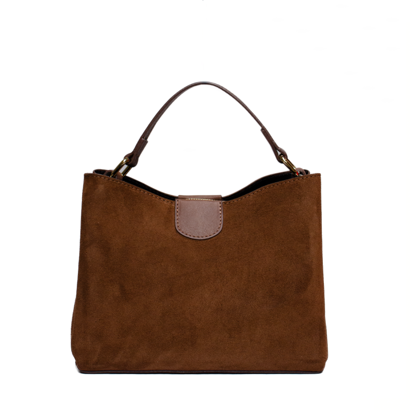 Finns i två varianter – narvat läder med kort ko-tryckt päls på framsidan (läder på baksidan för hållbarhet) eller mjuk mocka med kontrasterande nappaläderhandtag.