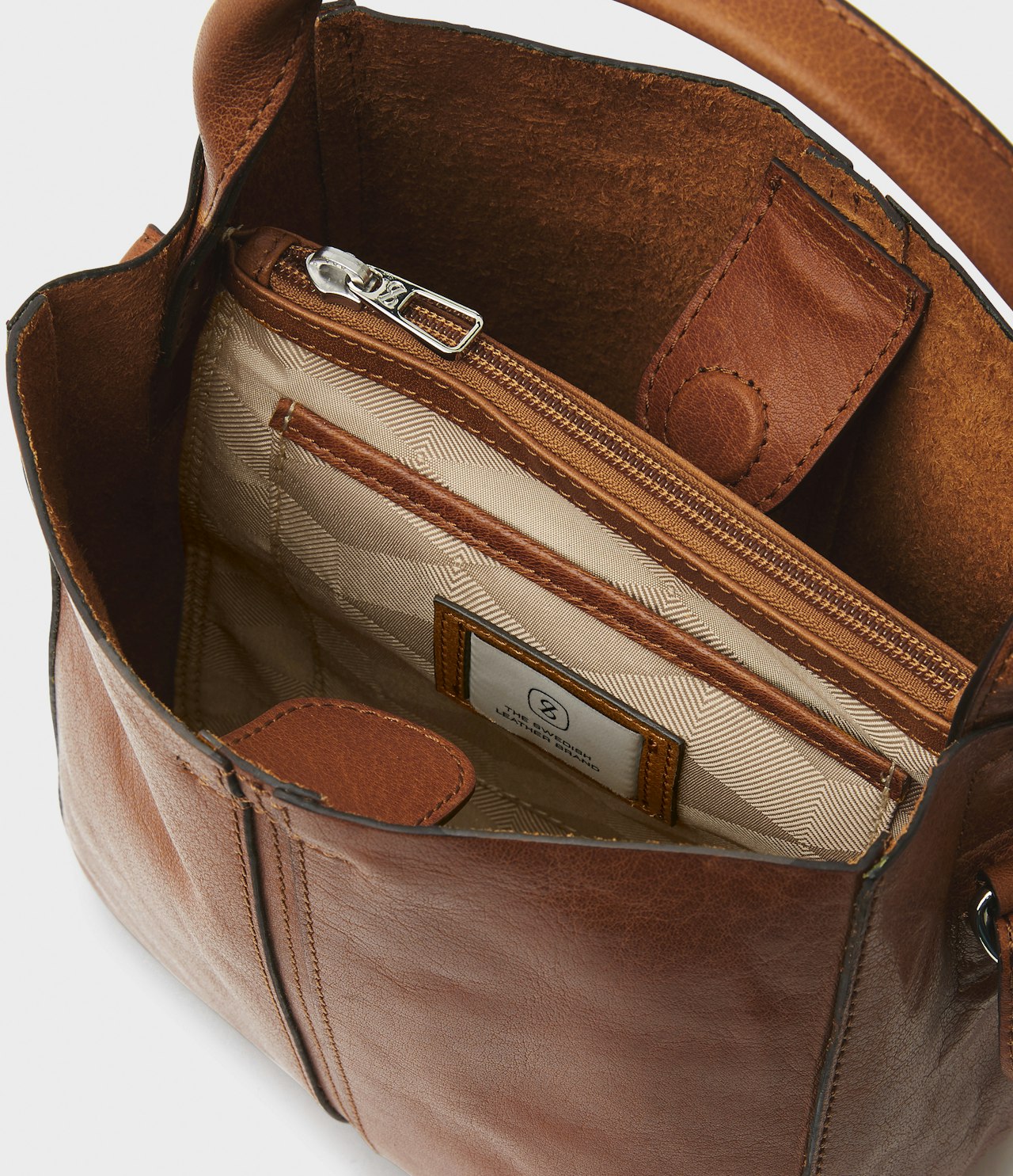 En liten toteväska i stilren design, tillverkad i ett vackert full grain-buffelläder, som bara blir finare i takt med tiden. Elsa mini är en rymlig axelremsväska som kan bäras både i handtaget och över axeln. På insidan av väskan finns två fack som försluts med magnet samt ett större fodrat fack med en ficka på utsidan som båda försluts med dragkedja. Axelremmen är justerbar och avtagbar med en längd om max. 89 cm och min. 71 cm. Detaljer i blank silverfärgad metall. Lädret i den här produkten är av högsta kvalitet och har behandlats i garveri certifierat av Leather Working Group.